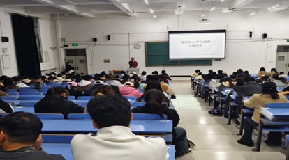 在互动分享环节氛围热烈,同学们以小组为单位交流践行校训的亲身经历:有同学分享坚持泡图书馆、攻克专业难题的“励学”故事;有同学讲述参与“三下乡”社会实践、助力基层发展的“敦行”收获;还有同学谈及在班级中包容互助、换位思考的“明理”感悟……真挚的分享引发全场共鸣,让校训精神在交流中扎根心底。