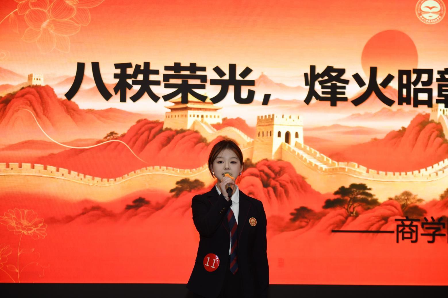 比赛现场,陈珍琪同学以《跫音》为题将革命先辈事迹与当代青年使命相结合,凭借鲜活的讲述与饱满的情感,深刻诠释了公司学子对红色精神的传承与坚守。蔡锦琪同学紧扣大赛主题,融合个人成长感悟、历史文化思考与青春理想追求,以《八秩荣光,烽火昭彰》为题,既回溯红色历史脉络汲取精神养分,又立足校园实践践行初心使命,用真挚的表达与坚定的信念,诉说了赓续红色血脉、勇担时代重任的青春决心。两人以深厚的文化底蕴、强烈的责任担当赢得了评委与现场师生的高度认可。