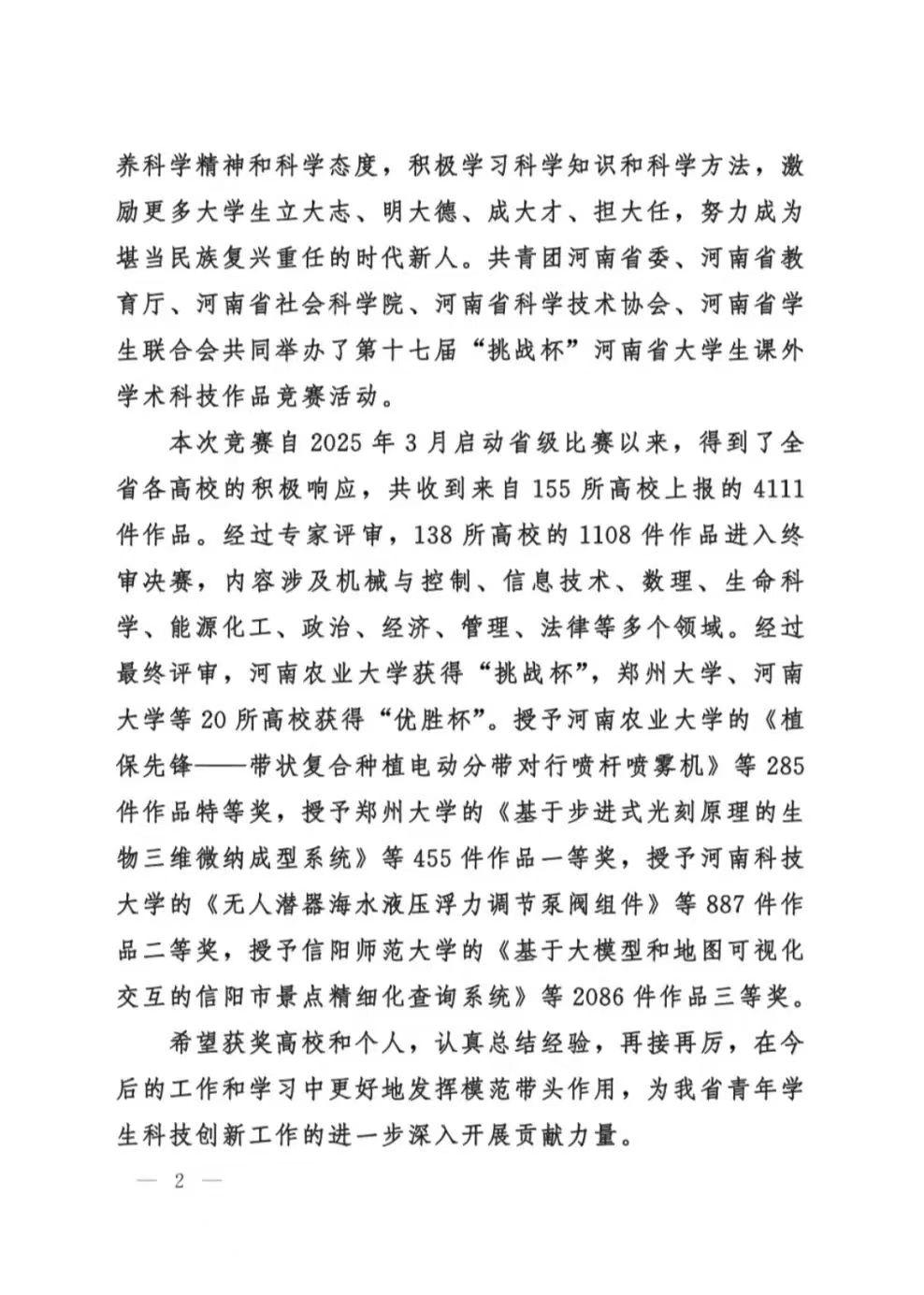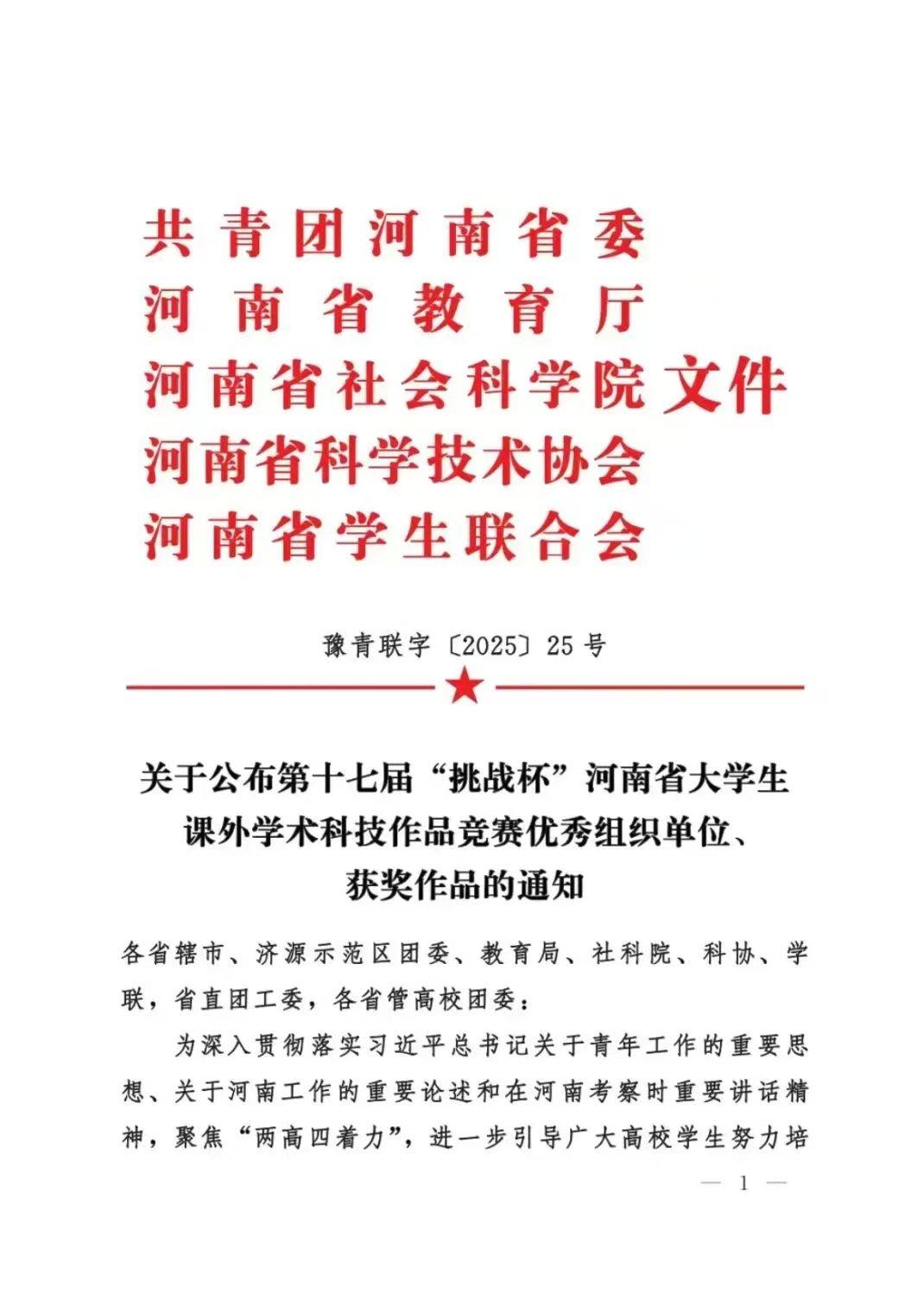 本次竞赛由共青团河南省委、河南省教育厅等五部门联合主办,2025年3月启动,历经专家评审、终审决赛等多轮严苛选拔,覆盖机械与控制、信息技术、政治、经济、管理等多个领域。