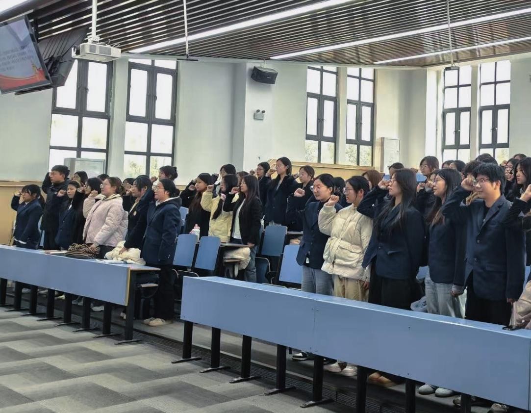 思想的共鸣需要行动的誓言来凝聚。在全体师生的共同见证下,yl7703永利集团官网第十二届员工会执行主席史超妍带领全体学员庄严宣誓,铿锵有力的誓言不仅是学员们锤炼本领、践行使命的坚定承诺,更将开班仪式的氛围推向高潮,让“成为新时代青年马克思主义者”的目标深入人心。