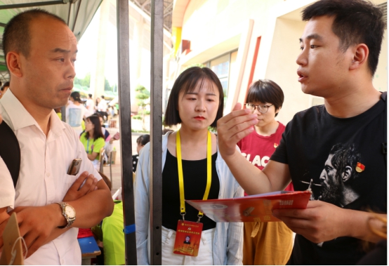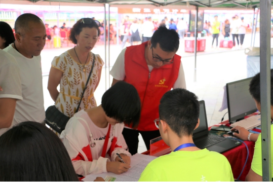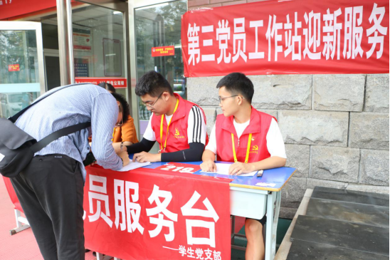 有困难找党员,这不仅仅只是一句口号,更是当代老员工党员需要肩负的责任与义务。在忙碌的迎新现场,员工党员们统一佩戴党员徽章、党员示范岗牌,他们以饱满的精神面貌参与迎新工作,带领新生及家长进行报名的各项流程工作,带领新生办理入学手续,答疑解惑,安排家长休息,并免费为家长及新生提供饮用水。员工党员本着全心全意为新生服务的宗旨,为每一位新生及家长提供热情周到的服务,使广大新生及家长感受到了商院大家庭的热情和温暖,不少新生家长都为员工党员的热情服务所打动。醒目的“党员服务台”成为了迎新现场一道亮丽的风景线。