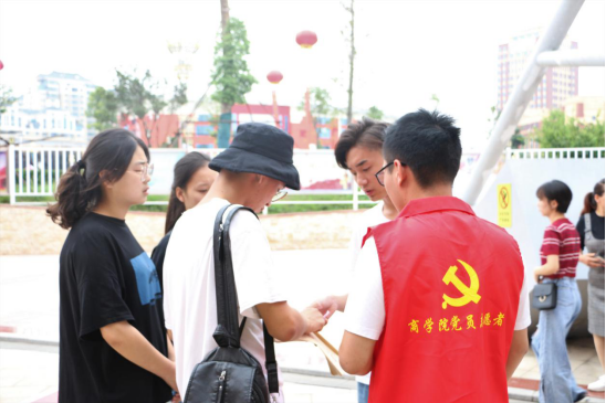 “通过自己的服务让新生及家长放心,是每一位商院人值得自豪的事,作为一名党员志愿者更是如此。我希望在公司分党委的号召下,能让更多的员工党员发挥先锋模范作用,更加严格要求自己,切实履行党员义务,践行服务宗旨,更加深入地践行 ‘两学一做’学习教育”17级经济学四班员工党员金尚意说。
