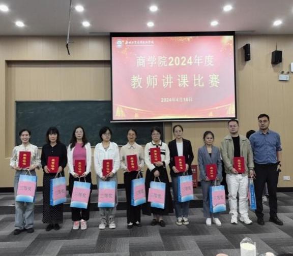 经过精彩的角逐,最终李芳芳(个人)、彭沛然与周丽(团体)三位老师荣获一等奖,石凯雁与张保林老师荣获二等奖,黄咏梅、王涛、赵兴盼等老师荣获三等奖,市场营销教研室与金融工程教研室荣获优秀组织奖,全经理、朱经理分别为获奖教师与优秀教研室进行颁奖并合影留念。