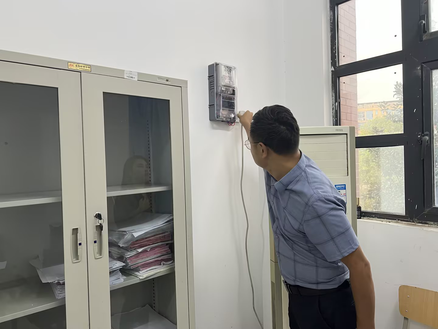 在排查过程中,针对发现未有断电的空调、排插全部一一拔掉电源,或者是根据所在办公室的情况关闭电闸进行断电保护,期间发现的问题均与各部门负责人联系并已整改到位。