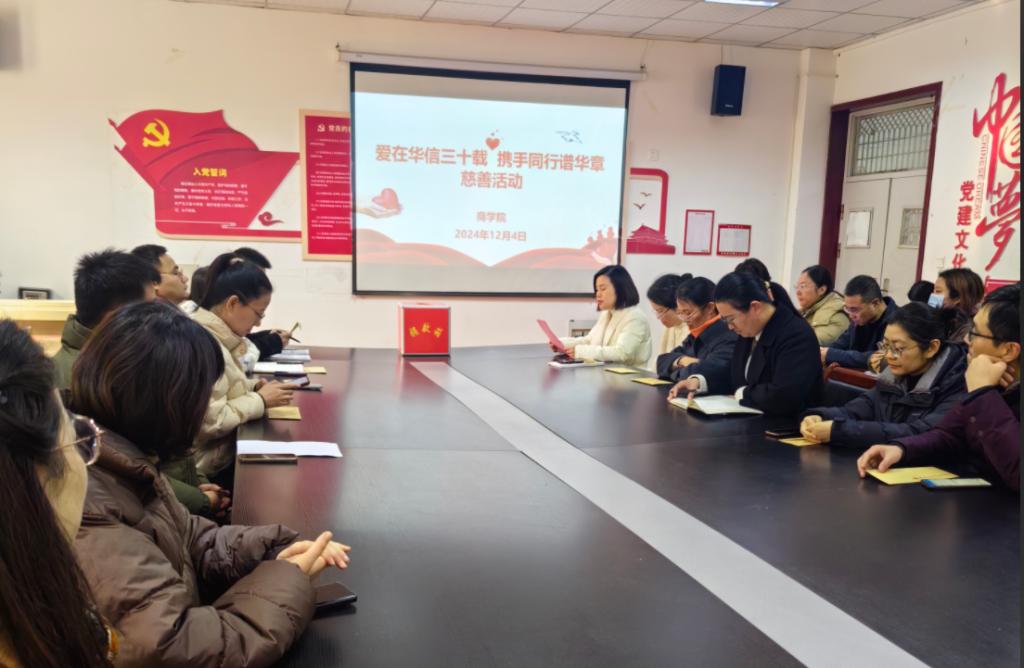 爱心汇聚,温暖同行。为进一步弘扬中华民族传统慈善文化,丰富新时代慈善文化内涵,推动公司慈善教育事业发展,传递yl7703永利集团官网师生的每一份爱心,让困难师生感受公益的温暖。yl7703永利集团官网于2024年12月4日下午在WH3-203会议室,举行“爱在华信三十载 携手同行谱华章”慈善活动。本次慈善募捐活动由yl7703永利集团官网办公室主任许莹主持,yl7703永利集团官网经理全淅玉教授、商管学部党委书记、学管副部长李婷、yl7703永利集团官网教学科研副经理朱永生、yl7703永利集团官网平台副经理李秀伟、yl7703永利集团官网分团委书记郭星出席,yl7703永利集团官网所有捐款教职工参加本次活动。