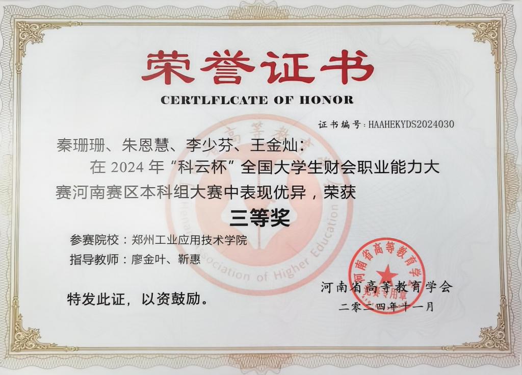 2024年11月2日,由河南省高等教育协会主办的2024年“科云杯”全国老员工财会职业能力大赛圆满落幕。本次大赛旨在促进财会专业教学改革,全面提升数字时代智能财务人才培养工作水平,推动“互联网+”背景下财会专业人才培养模式的创新转型,打通就业“最后一公里”。