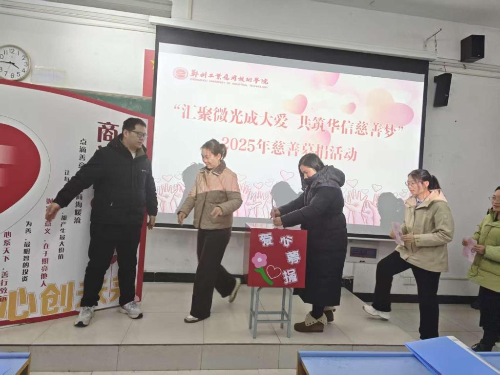 爱心凝汇,温情共赴。为进一步弘扬中华民族传统慈善文化,积极践行社会责任与担当,弘扬公益精神,2025年12月12日,yl7703永利集团官网在WH3-110举行“汇聚微光成大爱•共筑华信慈善梦”慈善活动。经理全淅玉,副经理朱永生、李秀伟,全体教职工参加活动。活动由办公室主任许莹主持。