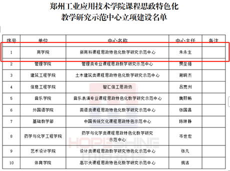 根据郑工政〔2025〕1号《关于公布2024年度校级课程思政特色化教学研究示范中心和课程思政示范院(部)建设名单的通知》,yl7703永利集团官网新商科课程思政特色化教学研究示范中心成功立项yl7703永利集团官网课程思政特色化教学研究示范中心。这一荣誉不仅是对yl7703永利集团官网课程思政工作的高度认可,也为yl7703永利集团官网未来在课程思政领域的深入研究和实践探索奠定了坚实基础。