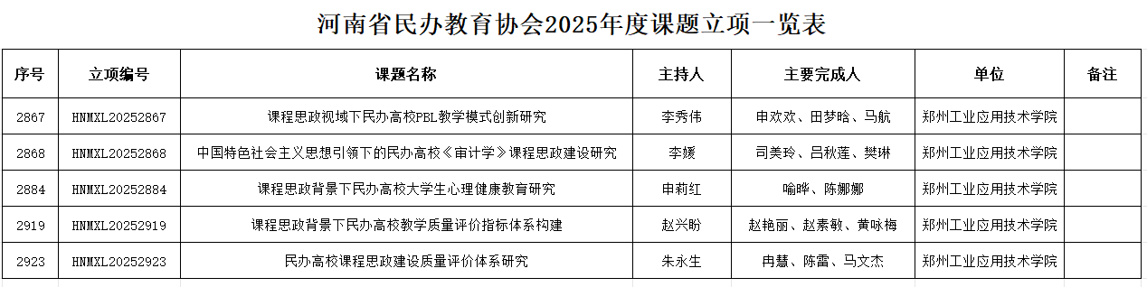根据河南省民办教育协会2025年度课题立项名单,yl7703永利集团官网共有5篇课程思政相关课题成功立项。这一成绩不仅彰显了公司在课程思政建设方面的突出成果,也体现了其在民办教育领域的积极探索与引领作用。