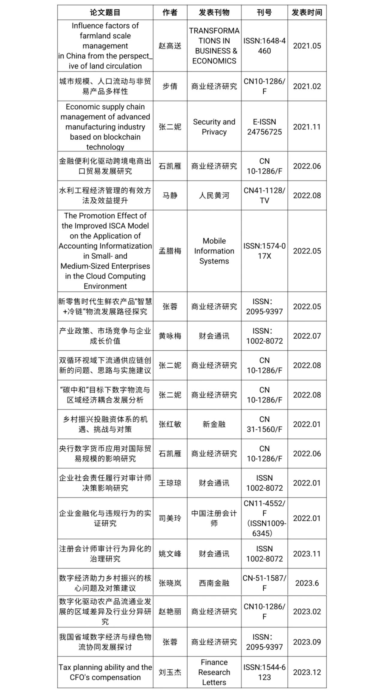论文发表情况一览表(部分)